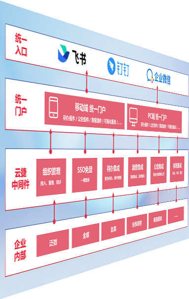 对协作平台提供支持服务,,支持企业应用与协作平台对接,,,,包含组织同步、、消息集成、、、待办集成等。。。支持目前主流的协作平台:钉钉、、企微和飞书。。